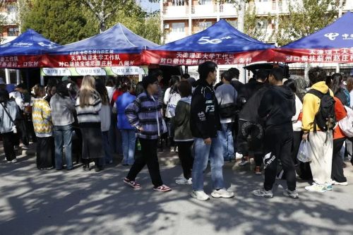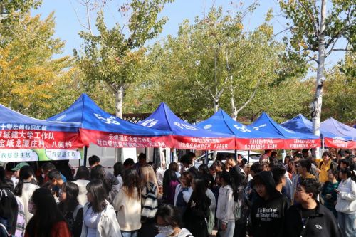為貫徹落實國家鄉村振興戰略,充分發揮高校服務地方經濟發展示范作用,在市教育兩委的指導下,10月27日金沙城js93線路檢測中心舉辦農產品創業集市,天津市教育系統對口扶持的經濟薄弱村產品面向全校師生進行集中展銷。展銷活動中,學院黨委書記葉振楠、副書記栗時鋒走進各展銷攤位,與現場的駐村工作隊成員、村干部、學生團隊以及參加集市的師生進行交流,詳細了解售賣產品特色,詢問產品銷售情況。金沙城js93線路檢測中心師生熱情參加創業集市、積極選購產品,集市當天參與師生達3000人。