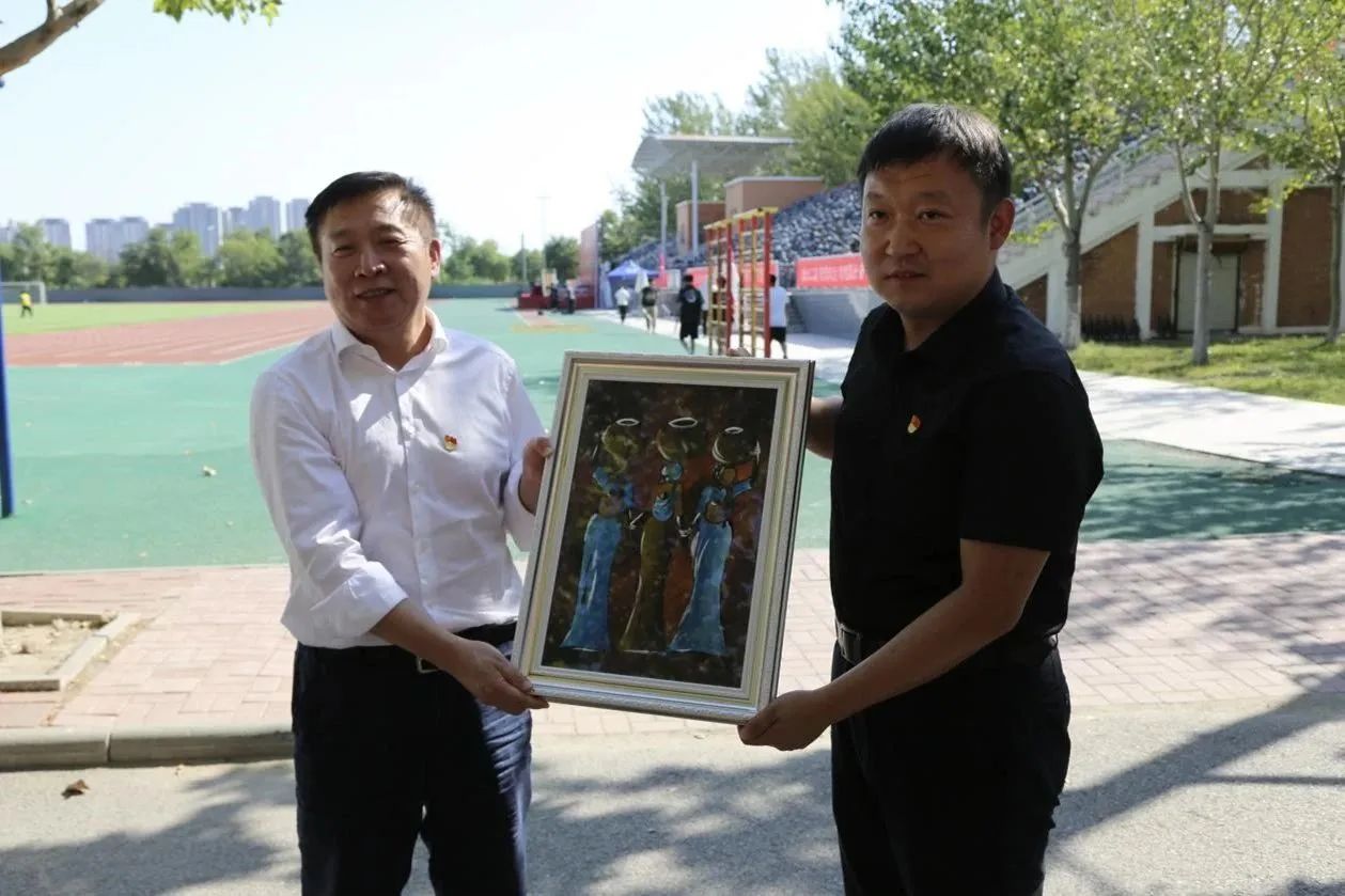 王赫明局長(zhǎng)向?qū)W院贈(zèng)送禮物,北京科技大學(xué)副校長(zhǎng)王魯寧代表學(xué)院接受贈(zèng)禮。