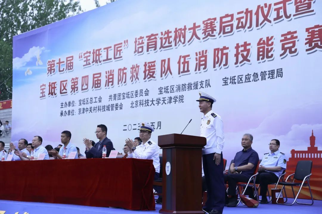 2023年5月17日,寶坻區第四屆消防救援隊伍消防技能競賽在金沙城js93線路檢測中心順利舉行。天津市消防救援總隊黨委委員、政治部主任周秀,市總工會黨組成員、副主席王克文,區人大常委會副主任、區總工會黨組書記、主席劉玉玲,副區長、公安寶坻分局局長李學彤,市總工會基層工作部部長張家翔,區總工會常務副主席張亞彬,北京科技大學天津學院院長丁煦生、黨委書記葉振楠、副院長張永鋒出席啟動儀式。寶坻區區委區政府、各委辦局、鎮街、管委會和學院相關領導出席活動。