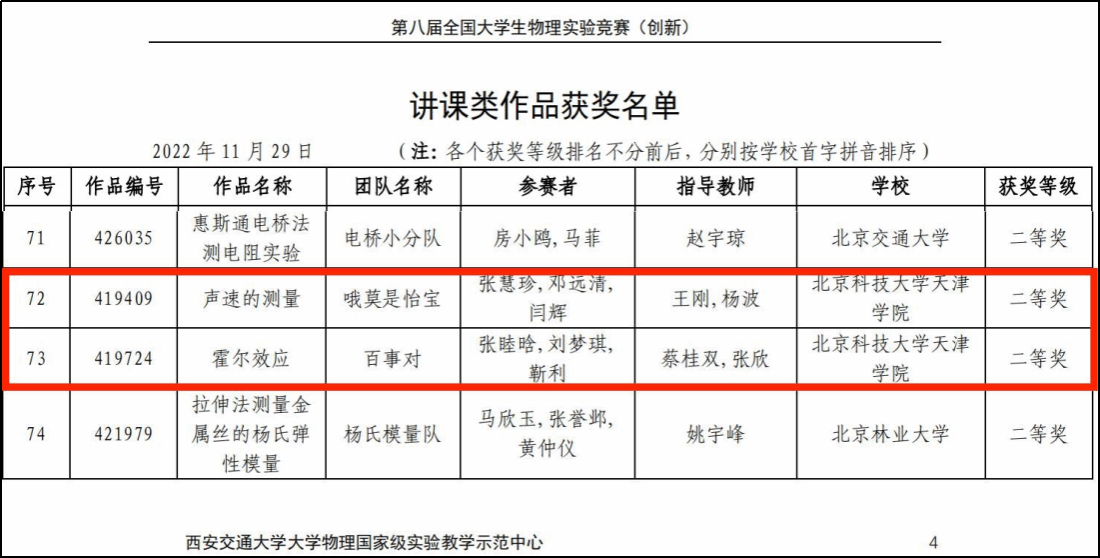 2022年11月29日,由國家級實驗教學示范中心聯席會物理學科組、全國高等學校實驗物理教學研究會、教育部大學物理課程教學指導委員會大學物理實驗專項委員會和中國物理學會物理教學委員會聯合舉辦,西安交通大學物理學院承辦的2022年第八屆全國大學生物理實驗競賽成功舉行,金沙城js93線路檢測中心兩支代表隊在比賽講課類賽道中榮獲佳績,兩支隊伍均獲得二等獎的好成績。