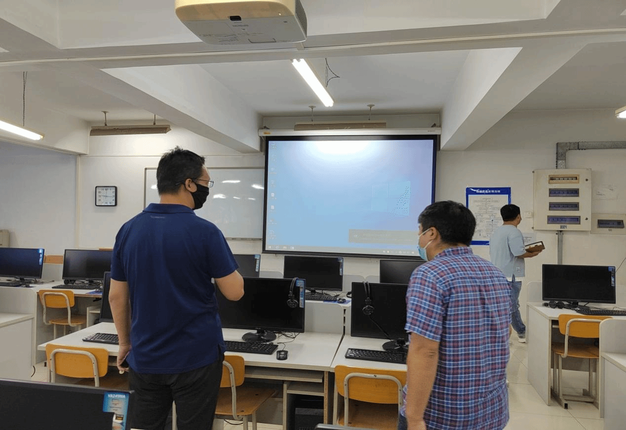 黨委副書記、副院長葉振楠帶隊檢查了10教和12教藝術學院教室。10教是學院最大的實驗樓,其中包含機房、語音室及實驗室等,葉振楠副書記認真地檢查了每一間教室,指出了存在的問題,叮囑相關部門及時調試設備,確保上課能正常運轉。