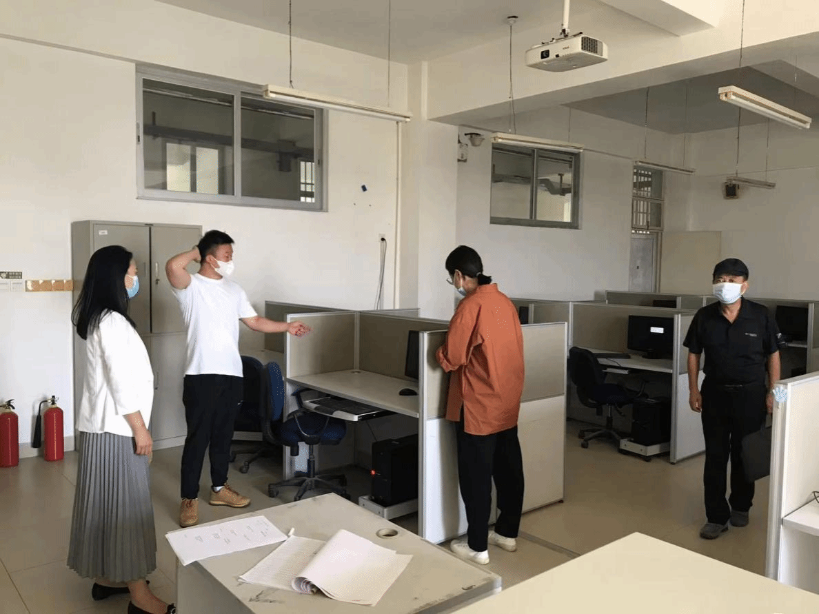丁煦生院長、張永鋒副院長帶隊主要負責8教、9教多媒體教室的檢查。8、9教多媒體教室是學院教學授課的主場地,為應對疫情,保證未返校學生同步順利開課,學院啟動疫情常態化教學方案,采取教室線下授課、網絡線上同步直播的線上線下混合式教學模式。檢查過程中,信息化建設與管理辦公室工作人員在8教101教室現場演示了線上線下混合式教學模式,丁院長現場做了指導并給予肯定。