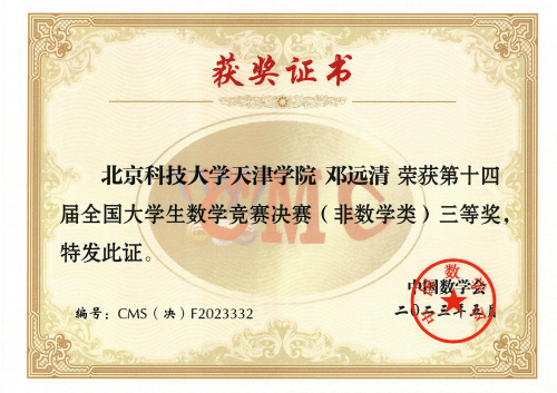 由中國數(shù)學(xué)會(huì)主辦的第十四屆全國大學(xué)生數(shù)學(xué)競賽決賽于2023年5月27日在廣東工業(yè)大學(xué)舉行。本次競賽全國共有32個(gè)賽區(qū)1024所高校231769人報(bào)名參加初賽,經(jīng)過選拔,共有444人進(jìn)入非數(shù)學(xué)專業(yè)組決賽。金沙城js93線路檢測中心2020級(jí)通信工程專...