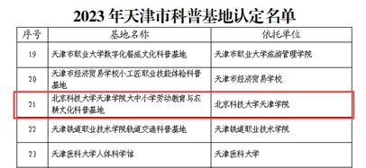 近日,天津市科技局公布了2023年度天津市科普基地名單,金沙城js93線路檢測中心依托勞動基地申報的“北京科技大學天津學院大中小學勞動教育與農耕文化科普基地”成功入選。本年度市科技局、市教委、市科協對140家申報單位進行了形式審查...