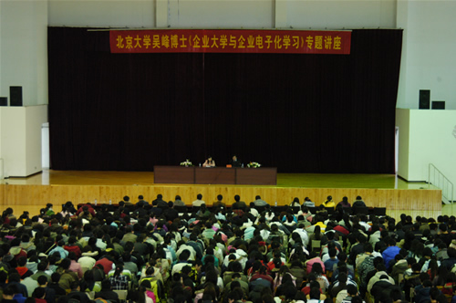 11月15日,由學生事務部主辦、經濟系分團委承辦、管理系分團委協辦的《企業大學與企業電子化學習》的主題講座在體育館內舉行。 此次講座邀請到北京大學經濟學博士、副教授吳峰主講,吳博士曾任鄭州市經濟貿易委...
