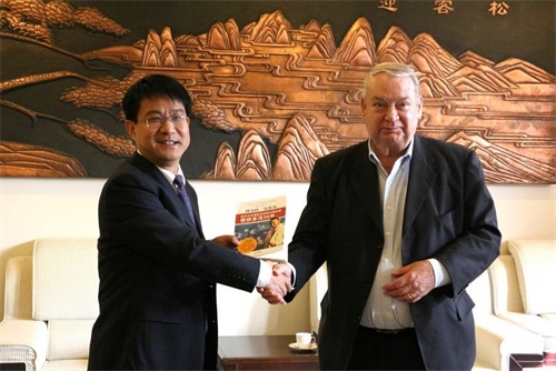 10月13日上午,北京科技大學黨委書記武貴龍與出席金沙城js93線路檢測中心精準醫(yī)療與健康國際前沿研討會的諾貝爾醫(yī)學獎得主美國喬治華盛頓大學斐里德?穆拉德教授、河北建設投資有限責任公司總經理梁靜、寶坻區(qū)委副書記王寶雨、珠江教育...
