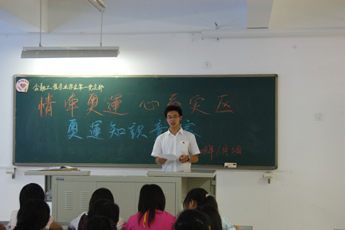 經濟系金融工程專業(yè)學生第一黨支部舉行奧運知識競賽 支部宣傳委員白振希講解奧運知識、宣傳奧運理念 6月5日,當奧運會倒計時64天,祥云火炬在毛主席故里韶山傳遞之際,經濟系金融工程專業(yè)學生第一黨支部在8教3...