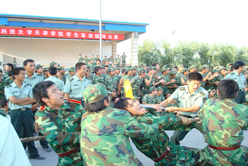 2007年9月8日下午3點(diǎn),在北京市懷柔區(qū)群英昊軍訓(xùn)基地的操場上,一場別開生面的拔河比賽在吶喊聲與歡呼聲中拉開了帷幕。 比賽以連為單位進(jìn)行,同學(xué)們爭相參加,男生組有7支隊伍,每支15人,女生組有5支隊伍,每支2...